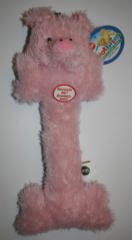 A fun chew toy in the shape of a PINK PIG. Warm and fuzzy. Great for puppies. Made of Chenille. Size: 14 inches long.